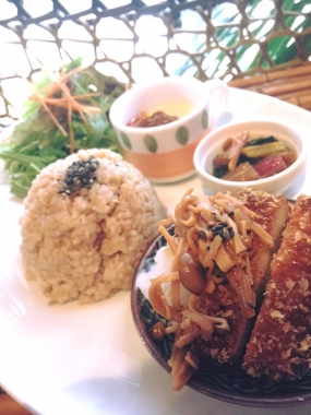 今日は、特にイベントはなく、 一日通して(11時〜21時まで) 通常営業しています。 お待ちしてま〜す。 * 今週〜来週<4/10(日) 〜 4/30(土)>の予定です。 http://blog.from-earth.net/?eid=874605 * 2016年 4月のイベント予定です。 http://www.cafe-ohana.com/news.html http://www.from-earth.net/NIKKI/nikki.html 本日のメニューは・・・、 ★本日のOHANAプレート★ * ベジ肉味噌丼 * ひじきときゅうりの胡麻和え * カブと人参のグリル 〜粒...
