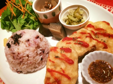 JUGEMテーマ:ベジタリアン・マクロビオティック・オーガニックなおいしいもの 今日のお昼ごはんは、山奥にある古民家を改造したカフェで、ヴィーガンメニューの「ほっこりごはん(週替わり定食)」を頂いてきた。 今日のメニューはこれ。 この古民家カフェは前々からヴィーガン対応のお店として時々利用しているのだが、自宅からローカルトレインにごろごろと40分ほど乗り、駅に着いたら広大な田んぼを突っ切って15分くらい歩かないといけないので、気合いを入れないとなかなかその気にならない。 今日は仕事で車に乗ってこ...