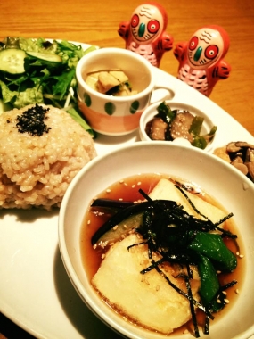 今日は、夜 19時〜 貸切りイベント。 本日の一般通常営業は11時〜18時半までとさせていただきます。 どうぞよろしくお願いします。 * 今週〜来週<7/26(日) 〜 8/9(日)>のイベント等の予定です! http://blog.from-earth.net/?eid=874151 * 2015年 8月のイベント予定、アップしました! http://www.from-earth.net/NIKKI/nikki.html 本日のメニューは・・・、 ★本日のOHANAプレート★ * 冷製 夏野菜の揚げ浸し * 叩き牛蒡の胡麻煮 * ...