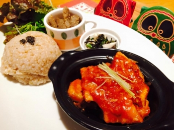 今日は、19時〜 冨田貴史さんを迎え、 アースデイ永田町・ミーティング。 こちらは、店内一部スペースでの開催ですので、 この時間帯も通常営業しています。 今日は一日通して(11時〜21時までの)通常営業です。 今月(4月)のイベント等の予定です! http://www.cafe-ohana.com/news.html http://www.from-earth.net/NIKKI/nikki.html 本日のメニューは・・・、 ★本日のOHANAプレート★ * 車麩のエビチリ風 * たたきごぼうのピリ辛ごま煮 * 長芋と春菊の梅あえ * みそ汁、サラダ...