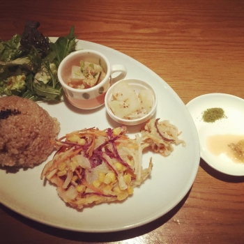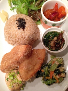 今日は、18時〜 団体予約が入ったため、 本日の通常営業は、11時〜18時までとさせていただきます。 18時以降は貸切り営業となります。 どうぞよろしくお願いします。 * 2015年 3月の予定です。 http://www.from-earth.net/NIKKI/nikki.html 本日のメニューは・・・、 ★本日のOHANAプレート★ * 高野豆腐のナゲット 〜ハニーマスタードで * 青菜ときのこの炒り豆腐 * ヤーコンのキンピラ * みそ汁、サラダ、お漬物 * 玄米 or 七分つき米(古代...