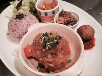 ふろむあーす&カフェオハナ、営業しています〜。 今日は、特にイベントはなく、 一日通して(11時〜21時まで)通常営業しています。 お待ちしてま〜す! ふろむあーす&カフェオハナ、 今週〜来週<12/15(月) 〜 12/31(水)>の予定です! http://blog.from-earth.net/?eid=873718 本日のメニューは・・・、 ★本日のOHANAプレート★ * 豆腐団子〜照り焼きソース * 冬野菜とお豆のトマトクリーム * 蓮根とヤーコンの酢味噌和え * みそ汁、サラダ、お漬物 ...