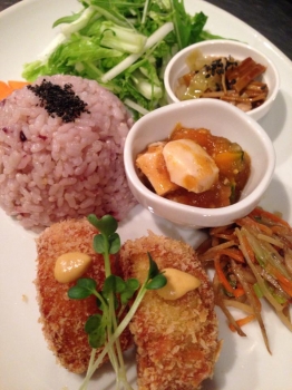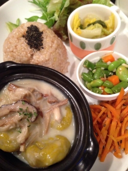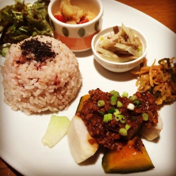 今日は、お店では、特にイベントはなく、 一日通して(11時〜21時まで) 通常営業しています。 お待ちしてま〜す! 深夜、新宿ロフトにて開催のオールナイトイベント、 プロテスト・フォーク・ジャンボリーSPECIAL 「標的の村、標的の島、標的の国」に、出店していますので、 こちらもどうぞよろしくお願いします。 本日のメニューは・・・、 ★本日のOHANAプレート★ * 南瓜と里芋のベジ肉味噌 * キノコと白菜のクリーム煮 * スパイシーポテトサラダ * みそ汁、サラダ、お漬物 * 玄米 or 七分つき...