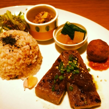 今日は、夜19時半〜 『食の選択』上映会 〜世界食料デー上映会 (にっしぃ劇場)〜 食は、消費者の日々の暮らしだけではなく、 社会や環境も変えるもの。 ぜひぜひ〜。 お気軽にご参加ください。 本日の一般通常営業は11時〜18時半までとなります。 (以降は上映会営業) 本日のメニューは・・・、 ★本日のOHANAプレート★ * 蒟蒻ステーキ 〜ベジデミグラス〜 * 冬瓜と小松菜のお浸し * ファラフェル 〜トマトソース〜 * みそ汁、サラダ、お漬物 * 玄米 or 七分つき米...