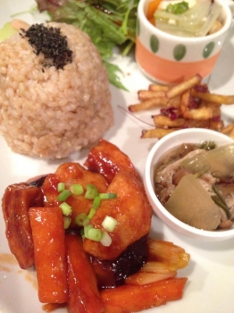 今日は特にイベントはなく、 一日通して(11時〜21時まで) 通常営業しています。 お待ちしてま〜す! 本日のメニューは・・・、 ★本日のOHANAプレート★ * 里芋と車麩の酢豚風 * 白菜と厚揚げの塩麹重ね煮 * 薩摩芋の金平 * みそ汁、サラダ、お漬物 * 玄米 or 七分つき米(古代米入り) ★本日の100%ベジカレー★ * 南瓜とベジミートの豆乳カレー(中辛) * 玄米 or 七分つき米(古代米入り)、サラダ ★本日のスープセット★ * カボチャの豆乳ポタージュ * パン、サラダ * ランチタ...