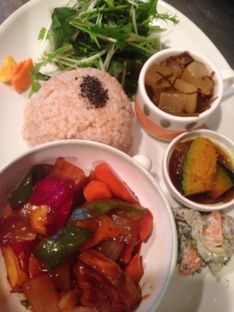 今日は特にイベントはなく、 一日通して(11時〜20時まで)通常営業しています。 お待ちしてま〜す! 今週〜来週<9/15月) 〜 9/29(月)>のイベント予定です! おすすめいろいろ。ぜひぜひお越しください〜。 http://blog.from-earth.net/?eid=873546 本日のメニューは・・・、 ★本日のOHANAプレート★ * *ソイミートの生姜焼き * 冬瓜と昆布のあっさり煮 * 玉ねぎのスパイシーポテト * みそ汁、サラダ、お漬物 * 玄米 or 七分つき米(古代米入り) ★本日の100%ベジカレー★ * じゃが芋とレン...