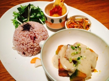 今日は、夜、19時〜 貸切営業。 本日の一般通常営業は11時〜19時までとなります。 どうぞよろしくお願いします。 秋分ウィーク。今週はおすすめライブが続々と続きます。 どうぞお気軽にお越しください。 * 今週〜来週<9/22(月) 〜 10/5(日)>の予定です! http://blog.from-earth.net/?eid=873561 本日のメニューは・・・、 ★本日のOHANAプレート★ * 蒸し南瓜のベジソボロ * ピーマンと切り干し大根の味噌炒め * 人参たっぷり白和え * みそ汁、サラダ、お漬物 * 玄米 or 七分つき米(古代米入り...