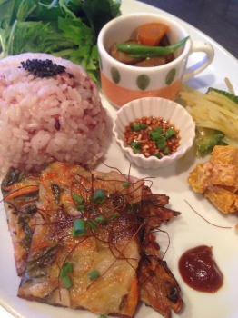 今日は特にイベントはなく、 一日通して(11時〜20時まで)通常営業しています。 お待ちしてま〜す! 本日のメニューは・・・、 ★本日のOHANAプレート★ * 蓮根と韮のチヂミ * 牛蒡とお揚げの煮もの * じゃが芋とゴーヤのナムル * みそ汁、サラダ、お漬物 * 玄米 or 七分つき米(古代米入り) ★本日の100%ベジカレー★ * ころころゴボウの OHANAカレー(中辛) * 玄米 or 七分つき米(古代米入り)、サラダ ★本日のスープセット★ * 南瓜の豆乳ポタージュ * パン、サラダ ★豆腐バー...