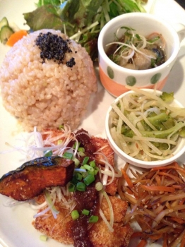 今日は、夜、19時半〜 店内一部スペースにて、 坂田昌子さんの寺子屋、 Remix School 第9回「いまさら聞けない戦後政治史 part.5」。 高度成長期、東京オリンピックの頃のお話しの予定です。 どうぞお気軽にお越しください。 こちらは店内一部スペースでの開催ですので、 この時間帯も通常営業しています。 今日は一日通して(11時〜21時まで)通常営業対応です。 本日のメニューは・・・、 ★本日のOHANAプレート★ * 揚げ出し豆腐〜照り焼きあん * 彩り野菜のマヨネーズ和え * ベジミートボール ...