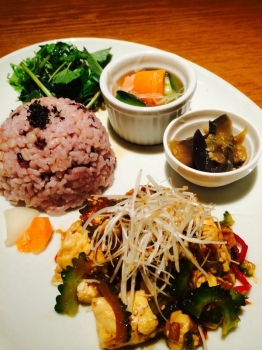 今日は、特にイベントはなく、 一日通して(11時〜20時まで) 通常営業しています。 お待ちしてま〜す! 本日のメニューは・・・、 ★本日のOHANAプレート★ * ベジゴーヤチャンプル〜 * 中華風蒸し茄子 * 人参と胡瓜のピクルス * みそ汁、サラダ、お漬物 * 玄米 or 七分つき米(古代米入り) ★本日の100%ベジカレー★ * お豆腐と大根のおうちカレー(中辛) * 玄米 or 七分つき米(古代米入り)、サラダ ★本日のスープセット★ * 人参とじゃが芋の豆乳ポタージュ * パン、サラダ ★豆...