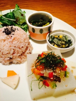 今日は、特にイベントはなく、 一日通して(11時〜20時まで) 通常営業しています。 土用入りです。この時期の養生は特に大切です。 お待ちしてま〜す! 本日のメニューは・・・、 ★本日のOHANAプレート★ * 冷製蒸し茄子〜香味ダレ * じゃが芋とトマトのバジル炒め * 人参のさっぱりピクルス * みそ汁、サラダ、お漬物 * 玄米 or 七分つき米(古代米入り) ★本日の100%ベジカレー★ * お豆腐と大根のおうちカレーー(中辛) * 玄米 or 七分つき米(古代米入り)、サラダ ★本日のスープセット★ ...