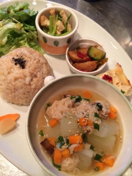 ふろむあーす&カフェオハナ、 今日は、お店では、特にイベントはなく、 一日通して(11時〜21時まで) 通常営業しています。 本日のメニューは・・・、 ★本日のOHANAプレート★ * 自家製精進水餃子 * キャベツとソイミートのトマト煮 * キヌアでタラモサラダ風 * みそ汁、サラダ、お漬物 * 玄米 or 七分つき米(古代米入り) ★本日の100%ベジカレー★ * お野菜ごろっとおうちカレー(中辛) * 玄米 or 七分つき米(古代米入り)、サラダ ★本日のスープセット★ * セロリと白い...