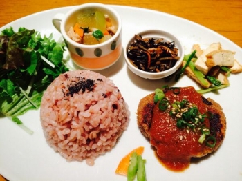 今日は、店内一部スペースにて、 【Sudha タロット占い】開催です。 (予約でいっぱいとなっています。次回の予約受付中です。) こちらは、店内一部スペースでの開催ですので、 この時間帯も通常営業しています。 一日通して(11時〜21時まで) 通常営業しています。 本日のメニューは・・・、 ★本日のOHANAプレート★ * ベジハンバーグ〜BBQソース * 祝島ひじきとゴボウのキンピラ * 冬瓜の和風マリネ * みそ汁、サラダ、お漬物 * 玄米 or 七分つき米(古代米入り) ★本日の100%ベジカ...