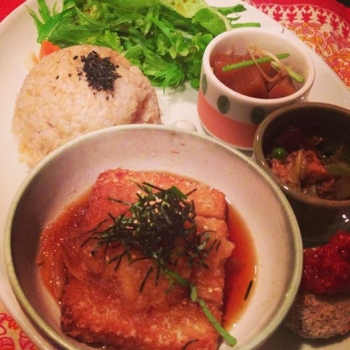 今日は、午後から、店内一部スペースにて、 【Sudha タロット占い】。 定員のため予約締め切りました。次回7/7(月)の予約受付中です。 こちらは、店内一部スペースでの開催ですので、 この時間帯も通常営業しています。 今日は、一日通して(11時〜21時まで) 通常営業しています。 本日のメニューは・・・、 ★本日のOHANAプレート★ * 高野豆腐カツのおろし煮 * きのことキャベツの炒め物 * ココナッツ焼きぽてと 〜トマトソース〜 * みそ汁、サラダ、お漬物 * 玄米 or 七分つき米(古代米入り) ★...