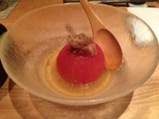 JUGEMテーマ:美味写真は、福躍さんの完熟とまとの丸ごと煮浸し。美味。 おでんをメインとするお店だけあって出汁がウリなのだが、この出汁が優しくて40過ぎの身体には染みる。こちらのお店の店名は、料理長の方の苗字そのものなのだが、なんともおめでたい苗字。お店の雰囲気、お顔、共に、記憶の片隅でモゴモゴっとしていたので、打ち明けてみたら、このお店からそれほど遠くない場所で、以前、やられていたとのこと。やっぱり!そのお店、随分前だが伺ったことがあったのだ。何かのご縁。大切にしていきたい。