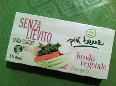 行きつけのオーガニック食品店のレジにあった野菜スープの素。 もちろんオーガニック、酵母が入ってないそうで〜おまけに グルテンフリー。 PIU BENE って「更に良い」?? 「さらに美味しい」だったら買うのにな〜と思いながら手に 取って見ていると、店の主人が「これは味噌の味付けなんだ ーあなたは味噌を知っているか?」 「日本人じゃけん知らんわけなかろー」と買ってしまいました。 家に帰ってからナンチャラ眼鏡をかけてよく見てみると 原材料:塩、味噌(大豆・米・水・塩・麹)シアバタ...