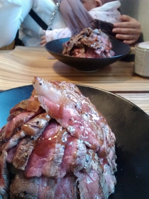 JUGEMテーマ:ステーキ こんにちは。京美肌 薔薇屋の岡田です。 サロンの準備で家に引きこもっている事が多い中、 仲良しご近所さんから買い物のお誘い・・・ 買い物メインのはずでしたが、買い物は足早にすませてランチがメインに ↓国産ステーキ丼専門店佰食屋さんへ行ってきました 前回の教訓を生かし、今回は定食ではなくステーキ丼単品で 肉はもちろんダブルです 次回はごはん少なめにします。 そしてもうしばらくお肉食べれません。 ステーキ丼、やっぱり美味しいですね...
