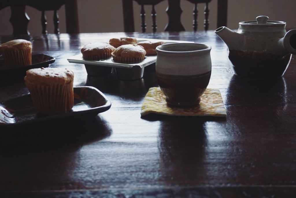 こんばんは。 今日も朝は冷え込んでいたけど 日中はすごしやすい一日でした。 ふわふわマフィンでおやつ。 白崎裕子さんのレシピは卵もバターも使わないのに ふわふわと膨らんで、美味しいおやつに仕上がるから本当に不思議です。 レシピではジャムを入れるのだけど、娘が苦手なのでジャムなし。 お兄ちゃんはちょっと残念そうだけど おいしそうに、すごい勢いで食べてくれるから わたしも嬉しい気持ちになる。 今まではプリン型で作ってい...