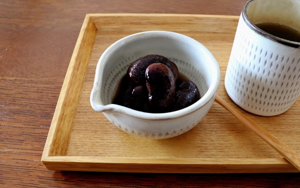 ●今日の1品● 〈大好きおやつ&梅子はん・・にゃ♪〉 また買うの?また食べるの?と言われます(笑) 豆・・小豆、黒豆、金時豆、白いんげん豆、うずら豆、紫花豆・・etc。 もともと煮込み料理が好きなので、ことこと煮豆、また作りました♪ 今回は紫花豆。 重曹でふっくらするまで水で戻し、茹でこぼして、ザラメ入り砂糖で味付け、隠し味の醤油。 自画自賛(笑)上手にできた!嬉しいよぉ♪ (ビギナーズラックのようなものなので、レシピはなしです^^) 知覧茶とお...