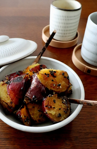 ●パン工房● 〈簡単大学芋&小麦姉さん・・にゃ♪〉 先日、母譲りの昭和の蒸し鍋で蒸しパンを作ったついでに、さつま芋も♪ ちょっとかために、むしておきました(^^ パンのフィリング用だったり、今回のように簡単大学芋にしたりと、大活躍(^^ かためとはいえ、中まで火が通ってるので、煮崩れないように動かさずに焼き色をつけるのがポイント♪ やや多めの油で炒め、後は大学芋のたれをからめるだけ。 生のお芋で作るあの特有の美味しさとは違いますが(^^ お手軽さと違...