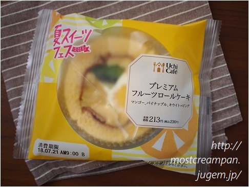 ローソンの夏のロールケーキ! 『プレミアムフルーツロールケーキ』 爽やかなフルーツと、爽やかなクリームが見えます とろりん カスタードの下にはホイップもありました
