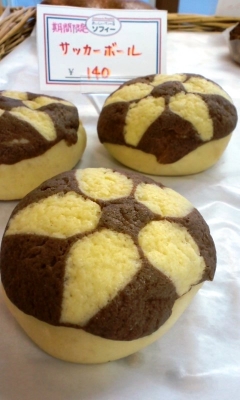 JUGEMテーマ:今日のおやつ ご来店下ったお客さま、 中央病院の売店や、外販でお求めくださったお客さま、 ありがとうございました。 新作「サッカーボール」です。 3,4回試作を繰り返しました。 まだ、納得のいくできばえではありませんが・・・・・ サッカーボールの模様のクッキー生地は、出来合いの物です。 パンの中には、チョコクリームが入っています。 サッカー好きな皆さま、いかがでしょうか?! 15日(日)、16日(第3月曜日)と、連休を頂きます...
