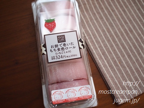 タイムリーな商品のご紹介。 ローソンのウチカフェシリーズで、 『お餅で巻いたもち食感ロール(いちごミルク)』。 見た目からもちもち感ハンパないです。生地がきれいなピンク色。 しっかりすぎるほどのもちもち具合に、 2種類のホイップと所々にごろっとした苺ジャムが入ってます。 甘酸っぱくて、美味しかったです。