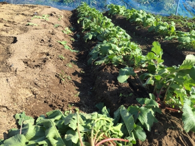 紅だいこんの間引きを行い、一株ごとになるように、 余分な苗を抜きました。 その後、化成肥料888、溶リンを投与して、 肥料に土を かけて間引き作業が終了しました。 JUGEMテーマ:旬・季節の食べ物