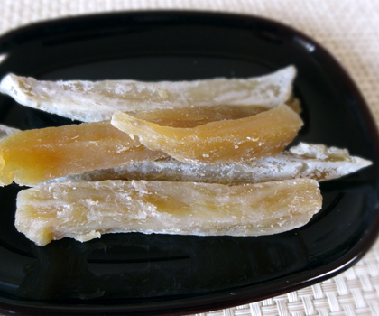 青山パン祭りに行ったときに衝動買いした、お茶屋さんの干し芋です。 袋を開けた瞬間、ふわ〜っとさつまいものいい香りが広がって、、、これはおいしそう♪ 食べてみると甘みがあって、なんとも言えない上品な香りがします。気のせいかも知れませんが、さつまいもにお茶の香りがほんのり加わったような・・・とてもいい香りです。 通常、干し芋はよく乾燥しているほど固くなるのに、これは乾燥しているのに繊維が詰まっていなくてさくさくした珍しい歯ごたえ。 力を入れなくてもさくっと噛めて、それでいて表面はさらさら...