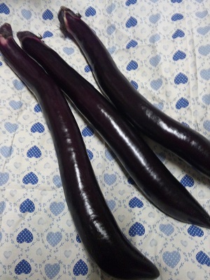 JUGEMテーマ:旬・季節の食べ物 熊本の大長なす(おおながなす)。 秋の旬の味覚。 初めてお店でみてびっくり。 果肉はジューシーで焼いたり煮たりするらしいです。