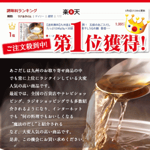 JUGEMテーマ:おとりよ 今回紹介するのは 九州産あご厳選使用!五縁のあご入だし! 九州産あご厳選使用!五縁のあご入だし! 九州産あご(飛魚)プラス 5種類のだし素材がうま味の掛け算! 大人気のあごだしが更においしくなりました! 実は!五縁のあご入だしはこのたび テレビに紹介されました! たちまちあなたも料理の達人! 毎日の料理にパンチが足りない!変化が足りない! と感じているあなた! 毎日の料理...