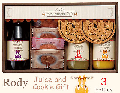 出産内祝いのギフトに大人気! ロディのジュース&クッキーギフトセット 100%のフレッシュジュースが、ロディの柄のかわいい瓶入りで登場です〜☆ サクッ&ホロッの食感がおいしい、2種類の味のクッキーと ロディ柄のコルクコースターまで入ったかわいいセットは お子様のいるご家庭へのギフトにも大好評です〜〜❤ 2本セット、3本セット、4本セット、5本セット と贈るご家庭の 人数などに合わせて選べる4種類のラインナップです〜! その他にもかわいいギフ...