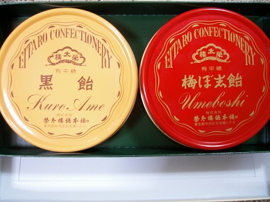 ひとこと: 昔ながらの老舗の飴♪ 糖分補給に良いかも☆ ↑榮太郎総本舗の有平糖 頂きものですが、榮太郎飴をはじめて食べました。 黒飴と梅ぼ志飴がセットになって箱に入っています。 榮太郎は有名ですよね、この飴も代表的な商品だそうです。