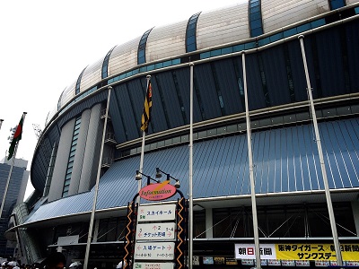 日曜日にママさんとだいちゃんの3人で 京セラドームで行われた阪神対中日の試合を 観戦してきたよ(´∀`) 甲子園観戦は毎年何度も行くけど 京セラドームでの観戦は初めて♪ 朝10時頃家を出て着いたのはちょうどお昼頃 車は球場から1.5?離れた汐見橋付近にある コインパーキングに止めたよ 日祝だと料金は最高600円らしい なんて良心的(笑) 試合開始時間は14時からなので まずは腹ごしらえをすることに 球場の隣にイオンがあったから そこで食べることにしたよ フードコートはすっごい人...