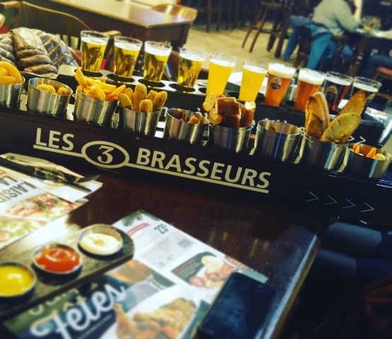 以前にも紹介したことのある、私のお気に入りの一つのレストラン・パブ “3 Brasseurs”。 https://www.les3brasseurs.ca/ 今回は、セメスターが無事に終了してクリスマスホリデーに入るということで、クラスメイト達と打ち上げに行ってきました! 学校の仲間たちはそこまで大酒のみの集まりではないので(笑)、個別にオーダーするかシェアするかと話し合っていたら、ちょうどいいスペシャルが! 10グラスのハーフパイントのビ...