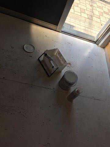 トリミングルームのペンキ塗り、なんとか終了。 現在乾くの待っているところ。 しかし乾きが遅い。 今日暑かったよね? フロアのペンキ塗りは今日は無理だな。 予定狂うなぁ〜。