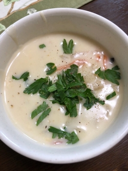 イタリアンパセリがぐんぐん伸びており、新しい苗も買ったので心置きなく収穫してトッピング。 ちょっと多め^^; アサリが結構入っているのに見えません。(クラムチャウダーのクラムはホントはハマグリだそうですが)、 下に沈んでいます。 アサリのおいしい時期は今だけ。年中アサリは見かけますが今が一番おいしい時期ですからね。 逃さずクラムチャウダーも。 アサリの炊き込みご飯も作ってみたい気がするけど、砂があったら・・・と思うとなかなか踏み切れません。 大好きな具だくさんスープです。 これとフランス...