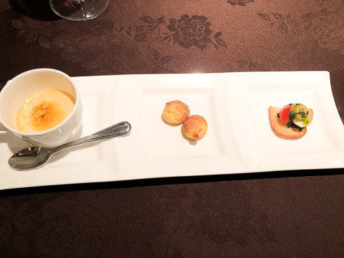 JUGEMテーマ:地域/ローカル JUGEMテーマ:熊本のグルメ 時折訪れるレストラン。 この日も友人とのディナー。 あああ、と思ったときには メインディッシュの画像を撮り忘れました。 このお店の素敵なところはメインはさることながら アミューズとか前菜の素敵なところが やはり他とは違うと思わせてくれるところなのでご勘弁を。 まずオードブル