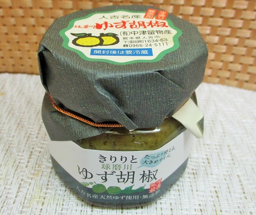 人吉名産 球磨川ゆず胡椒 手作り無添加 70g/540円(税込) 製造発売元:有限会社中津留物産(熊本県人吉市下添田町1634-63) ご近所様のおみやげで頂きました〜♪ 私は、お刺身などに使いましたが、中毒性があって、また欲しくなる…。 70gの大きめサイズ。ちょっとずつ使うので消費するまで1ヶ月ほどかかった…。 どっかで買えるかな〜って、いろいろ見ましたが… ネットで直販あるんだけど、まとめて4本買ったとしても、やっぱ送料(1,00...