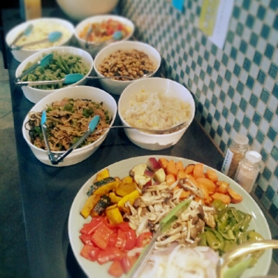 JUGEMテーマ:美味しく愉しく外ご飯 ちょっと早めの忘年会と称してCHIKAさんとランチしてきました。 お店は牛込神楽坂駅からすぐの ソデスリザカ です。 1,000円でランチビュッフェ、デザートもあり、フリードリンク! ランチは野菜中心でした(^_^)v サラダの他に焼き野菜がありました。 お塩をかけていただきます。 カレーや豆乳シチューもありました。 この日のメニューはこちら↓ お野菜が美味しくて何度もおかわりしてしまいました(^.^) デザート...