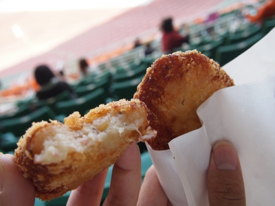JUGEMテーマ:美味しく愉しく外ご飯 5月の話だけど、エコパで開かれてたB級グルメスタジアムに彼氏と一緒に行ってきました。 去年もやってたの知ってたけど、日程が合わなくて行けなかったんだよねー。 今年は予定がなかったので、彼氏の車でエコパまで。 行きは彼氏が運転したけど、帰りはわたしが運転したよ! 会場につくのがおやつ時なのもあって、中には売切れちゃってるお店も。 混雑もひと段落したみたいなので、のんびり回れたよ。 食べたものはこちら! 1.みしまコロッケパン(静岡県三島市) …の...
