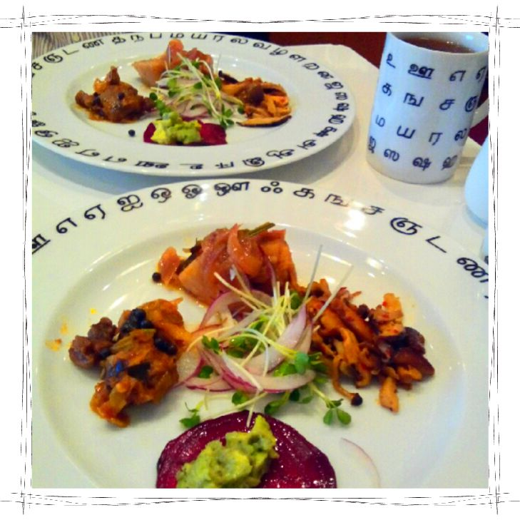 JUGEMテーマ:美味しく愉しく外ご飯 水道橋にある紅茶専門店「セイロンドロップ」でランチ♪ スリランカ料理がマイブームなのです。 前菜とカレーのセットをいただきました。 前菜は 牛肉ゴラッカ煮込み キノコのガーリックバター 冷たいワサビビーツ 赤玉ねぎとカイワレ大根 冷たいブレッドフルーツ ビーツとワサビの組み合わせが面白いですね。 色も鮮やかで家で真似したいと思いました。 カレーは ポテト チキン 揚げナス に豆のせんべいとココナッツの和え物がついてい...