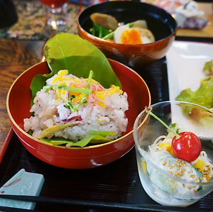 八尾の風の家、 友人とや、実家の両親とは行ったことがありますが、 ダーリンとは行ったことがありません。 営業日が木・金・土と週のうち3日だけだし、 冬の間はずっとお休みでしたから 昨日の土曜日、タイミングが合ったので ダーリンと予約なしでしたが訪ねてみました。 「今日は朴葉寿司ですよ〜」 カラフルで美味しそうなご飯 でも何か足りない この手前の空間は ダーリンと顔を見合わせ 「汁物がないね」 「今日のはついてないんじゃないか」 料理をほぼ食べ終わろうと...