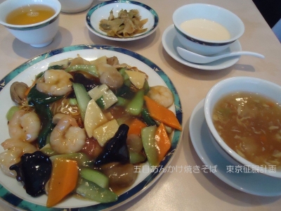 ======================== 2020年12月、諸般の事情により閉店しました。 ======================== 「中国料理 謝朋殿 本店 新宿110ビル店」 しゃほうでん ランチ 五目焼きそばセット 1,300円 (税込) 具 えび1尾・いか・豚肉・白菜・たけのこ・ほうれん草・キクラゲ・しめじ・に...