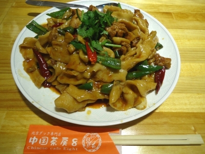 (2016年 11月) 手打ちベルト麺のスパイシー炒め 鶏肉 1,180円 (税込 1,274円) 具は 鶏肉とピーマンで、赤唐辛子・青唐辛子・ニンニクスライス・生姜スライス・ネギ入り、パクチーのせ。 辛さが選べ、いちばん辛くない“小辛”でけっこう辛く、麺はモチモチした不規則な形 食べにくいけれどおいしかった。 量は1.5人前くらいありました。 ☆ 焼きそば メニュー ☆ 海鮮五目あんかけかた焼きそば 880円 上海焼...