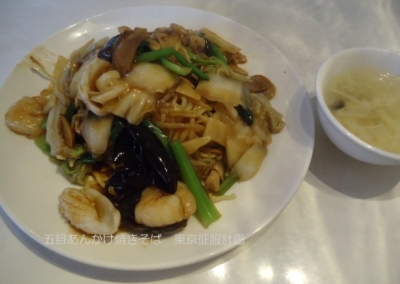 JUGEMテーマ:中華料理 「 目黒菜館 」 めぐろさいかん 広東料理と薬膳火鍋の中華料理店です。 五目あんかけ焼きそば 920円 (税別) 具 えび2尾・いか2・たけのこ・白菜・豚肉・きくらげ・マッシュルーム・フクロタケ・小松菜 など 麺 平麺 太さ普通 焦げ目しっかり・パリパリ部分あり ニンジンなし。海老はプリプリ、味は濃くなく油っこさもなく、普通でした。 スープは卵と豆腐、冷たいお茶が出ました。 < 焼きそば メニュー > 野菜焼きそば (ランチ)880円 五目か...