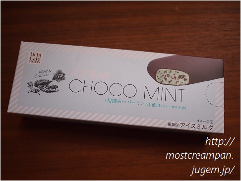 UchiCafeなんですが、ロッテさんが作っております。 『アイスバー チョコミント』。シンプルな箱って好感持てます。 正統派です! 側面に書いてある一言が・・・!