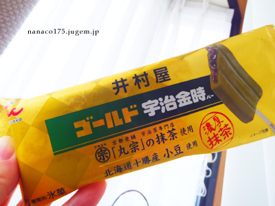 3種類買ったゴールドシリーズのラストです♡周りの抹茶氷がほんとに苦い!!中心のふっくらあずきと一緒に食べるとほど良いです〜〜大人の味ですね(*´∀`*)