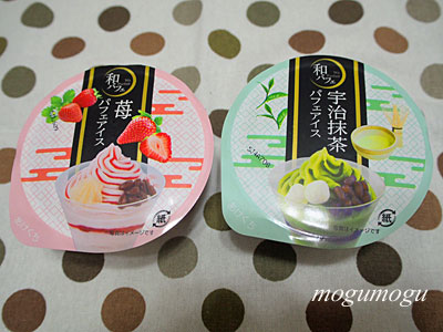 JUGEMテーマ:アイス ファミマで気になっていたアイス 井村屋の和パフェの抹茶と苺 抹茶はこんな感じになってるみたい フタを開けるとこんな感じ 食べてみると甘すぎずにあっさりしています。 抹茶はほんのりって感じです。 おもちもう少し柔らかかったらいいのにな… 苺はこんな感じになってるみたい フタを開けるとこんな感じ こっちも甘さ控えめでさっぱりしています。 もう少し、苺ソースが入っていてもいいかも。 後味は苺の方がいいです。 私...