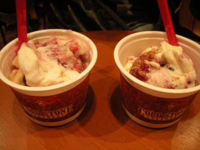 JUGEMテーマ:アイス 9月に大阪に行ったとき、初めてコールドストーンクリーマリーに行ってきたよ! 昔は浜松にもあったけど撤退しちゃって(涙) お昼ご飯にデンタイフォン食べて大満足してたけど、暑かったし念願だったし、彼氏を説き伏せたのでした。 わたしが注文したのは「ストロベリーショートケーキセレナーデ」。ベリーベリーベリーグッドと迷ったけど、なんとなくこっちを選択。 バナナラバーの彼氏は「アット ザ ココア バナナ カバナ」を頼んでたよ。 アイスを練りねりしてる時に店員さんが歌ってくれる...